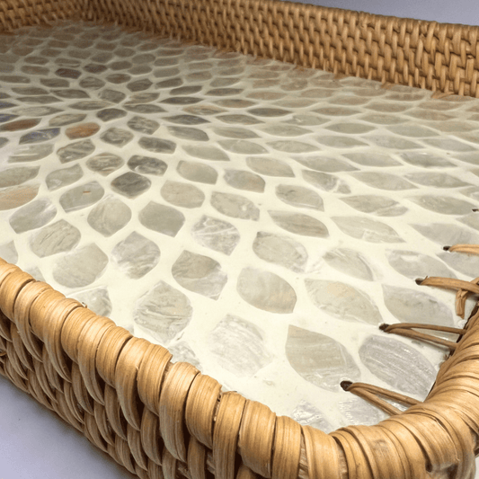 Sedef Kaplama Rattan Tepsi