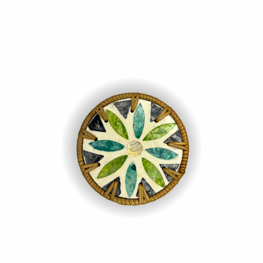 4'lü Sedef Kaplama Rattan Bardak Altlığı